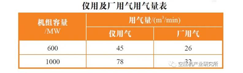 儀用氣及廠用氣用氣量:根據(jù)《火力發(fā)電廠儀用、廠用壓縮空氣系統(tǒng)設(shè)計技術(shù)導(dǎo)則》,2臺機組常見儀用氣及廠用氣用氣量見表: